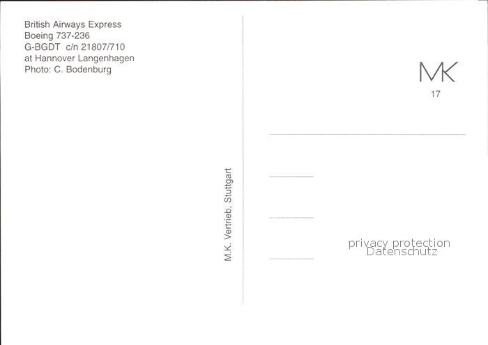 Flugzeuge Zivil British Airways Express Boeing 737-236 G-BGDT c/n 21807/710 postalisch nicht gelaufen Erhaltung siehe scans