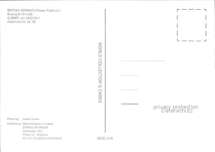 Flugzeuge Zivil British Airways Flower Field Boeing B-757-236 G-BMRI c/n 24267/211 postalisch nicht gelaufen Erhaltung siehe scans