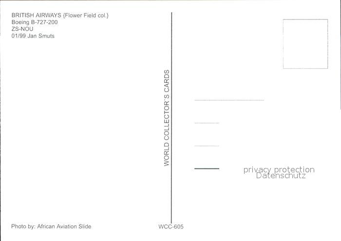 Flugzeuge Zivil British Airways (Flower field col.) Boeing B-727-200 ZS-NOU postalisch nicht gelaufen Erhaltung siehe scans