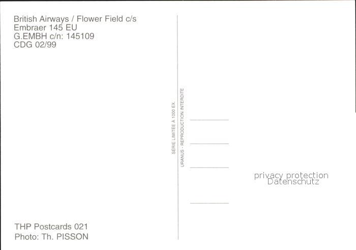 Flugzeuge Zivil British Airways Flower Field Embraer 145 EU G.EMBH c/n 145109 postalisch nicht gelaufen Erhaltung siehe scans
