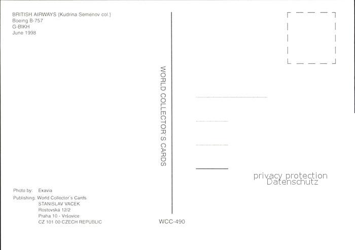 Flugzeuge Zivil British Airways Kudrina Semenov colours Boeing 757 G-BIKH postalisch nicht gelaufen Erhaltung siehe scans