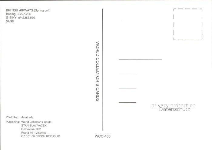 Flugzeuge Zivil British Airways (Spring col.) Boeing B-757-236 G-BIKY c/n 23533/93 postalisch nicht gelaufen Erhaltung siehe scans