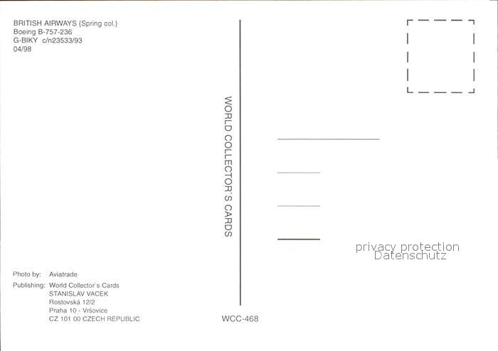 Flugzeuge Zivil British Airways Spring colours Boeing 757-236 G-BIKY postalisch nicht gelaufen Erhaltung siehe scans