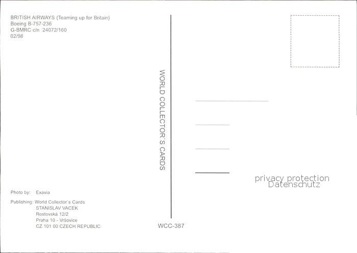 Flugzeuge Zivil British Airways Teaming up for Britain B-757-236 G-BMRC c/n 24072/160 postalisch nicht gelaufen Erhaltung siehe scans