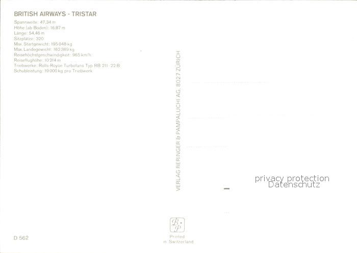 Flugzeuge Zivil British Airways TriStar postalisch nicht gelaufen Erhaltung siehe scans