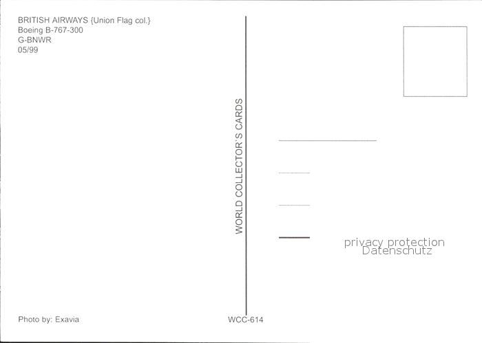 Flugzeuge Zivil BRITISH AIRWAYS (Union Flag col.) Boeing B-767-300 G-BNWR postalisch nicht gelaufen Erhaltung siehe scans