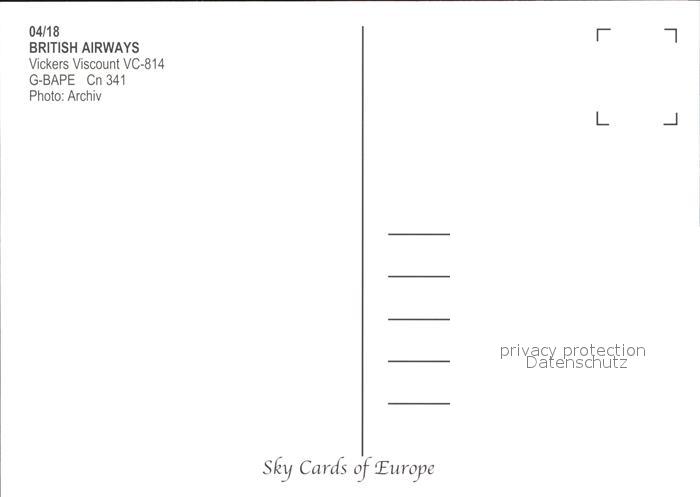 Flugzeuge Zivil British Airways Vicher Viscount VC-814 G-BAPE Cn 341 postalisch nicht gelaufen Erhaltung siehe scans