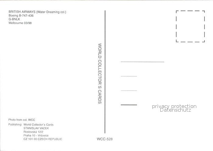 Flugzeuge Zivil British Airways Water Dreaming colours Boeing 747-436 G-BNLK postalisch nicht gelaufen Erhaltung siehe scans