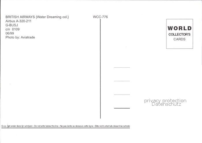 Flugzeuge Zivil British Airways Water Dreming Airbus A-320-211 G-BUSJ c/n 0109 postalisch nicht gelaufen Erhaltung siehe scans