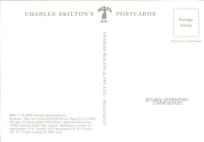 Flugzeuge Zivil British Caledonian Airways BAC 1-11 500 Series postalisch nicht gelaufen Erhaltung siehe scans