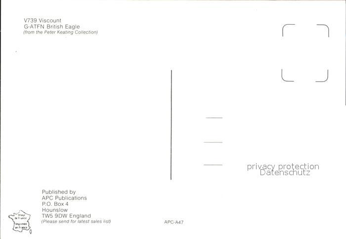 Flugzeuge Zivil British Eagle V739 Viscount G-ATFN postalisch nicht gelaufen Erhaltung siehe scans
