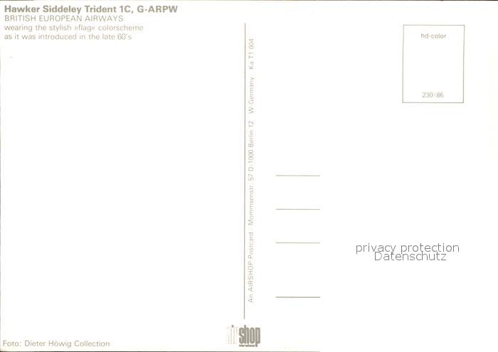 Flugzeuge Zivil British European Airways Hawker Siddeley Trident 1C G-ARPW postalisch nicht gelaufen Erhaltung siehe scans