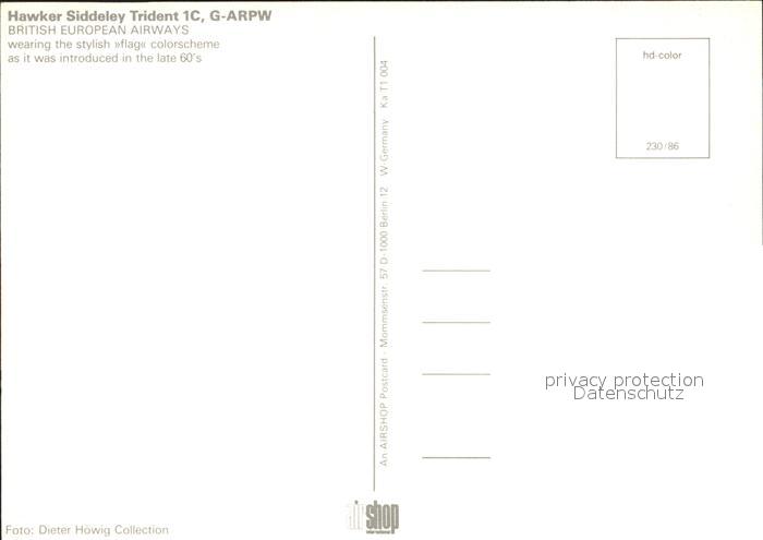 Flugzeuge Zivil British European Airways Hawker Siddeley Trident 1C G-ARPW postalisch nicht gelaufen Erhaltung siehe scans