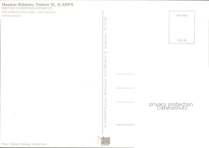 Flugzeuge Zivil British European Airways Hawker Siddeley Trident 1C G-ARPX postalisch nicht gelaufen Erhaltung siehe scans