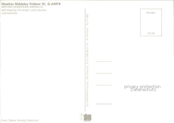 Flugzeuge Zivil British European Airways Hawker Siddeley Trident 1C G-ARPX postalisch nicht gelaufen Erhaltung siehe scans