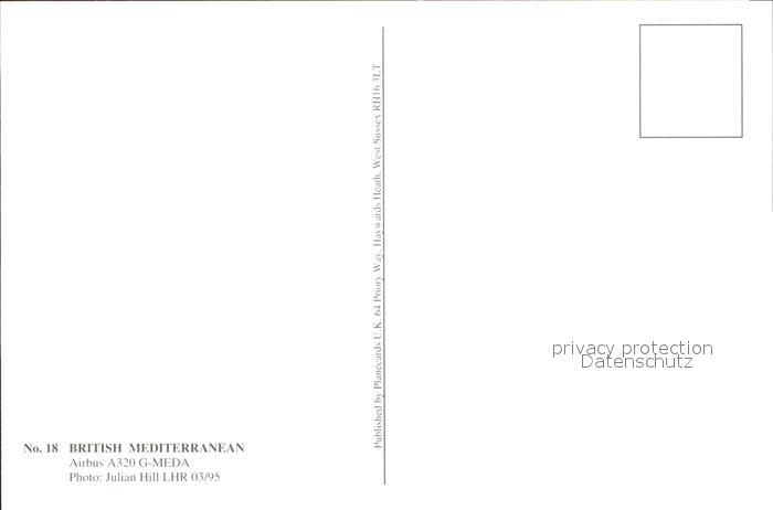 Flugzeuge Zivil British Mediterranean A320 G-MEDA postalisch nicht gelaufen Erhaltung siehe scans