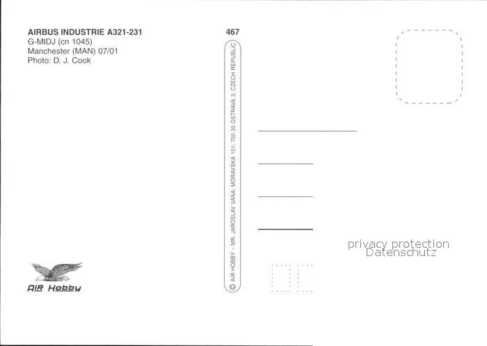Flugzeuge Zivil British Midland Airbus Industrie A321-231 G-MIDJ cn 1045 postalisch nicht gelaufen Erhaltung siehe scans