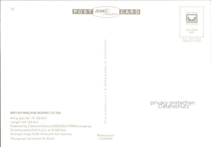 Flugzeuge Zivil British Midland Boeing 737-300 G-OBMA postalisch nicht gelaufen Erhaltung siehe scans