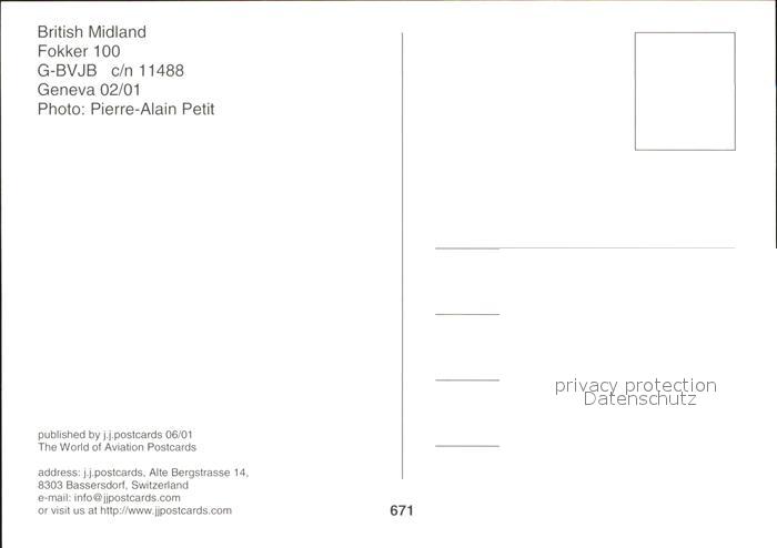 Flugzeuge Zivil British Midland Fokker 100 G-BVJB c/n 11488 postalisch nicht gelaufen Erhaltung siehe scans