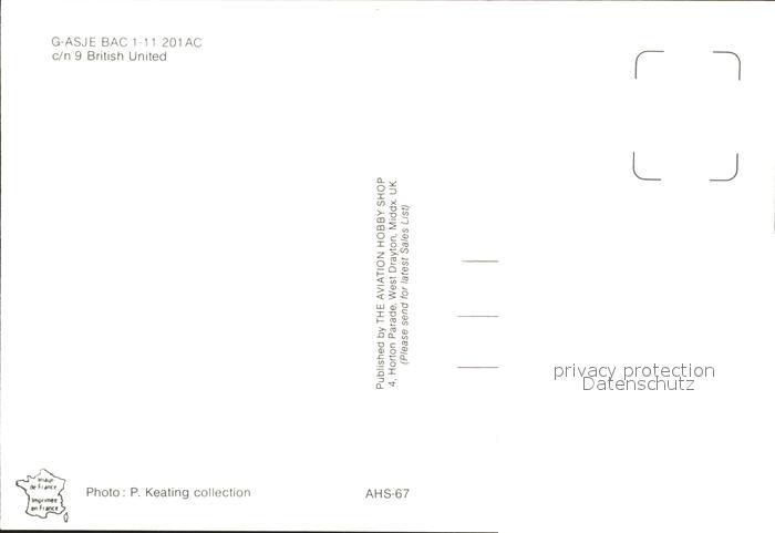Flugzeuge Zivil British United G-ASJE BAC 1-11 201AC c/n 9 postalisch nicht gelaufen Erhaltung siehe scans