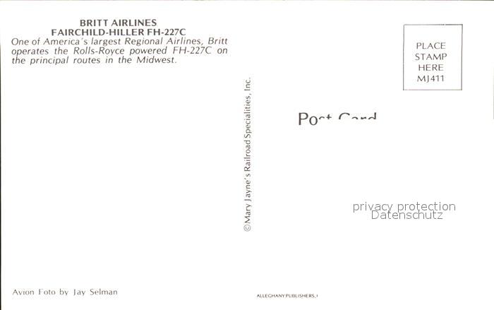 Flugzeuge Zivil Britt Airlines Fairchild Hiller FH-227 C postalisch nicht gelaufen Erhaltung siehe scans