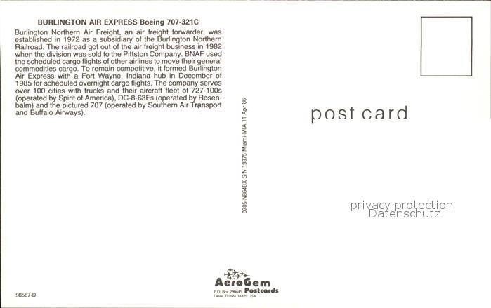Flugzeuge Zivil Burlington Air Express Boeing 707-321C postalisch nicht gelaufen Erhaltung siehe scans