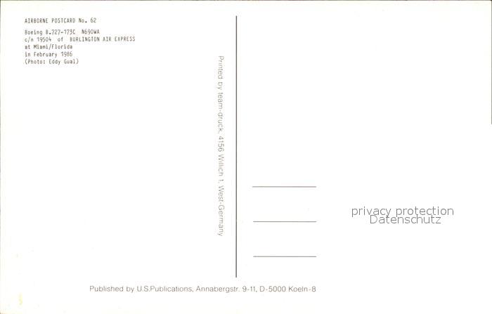 Flugzeuge Zivil Burlington Air Express Boeing B727-173C N690WA c/n 19504 postalisch nicht gelaufen Erhaltung siehe scans
