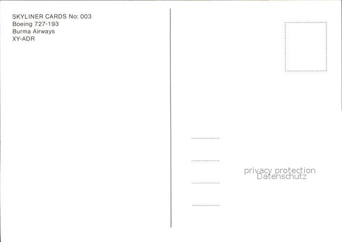 Flugzeuge zivil Burma Airways Boeing 727-193 XY-ADR postalisch nicht gelaufen Erhaltung siehe scans