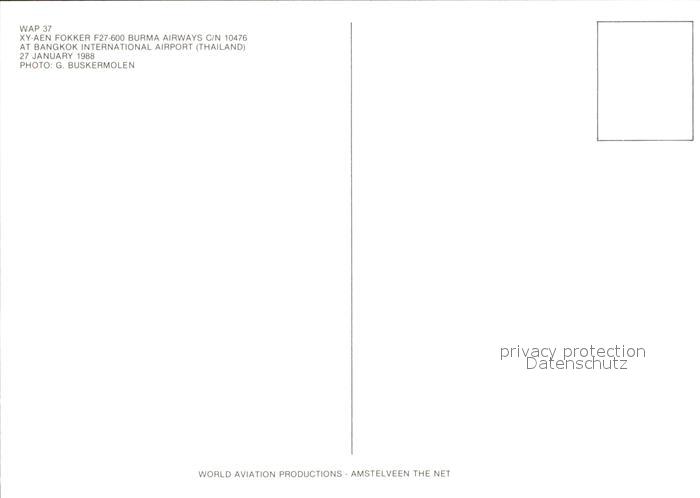Flugzeuge Zivil Burma Airways XY-AEN Fokker F-27-600 C/N 10476 postalisch nicht gelaufen Erhaltung siehe scans