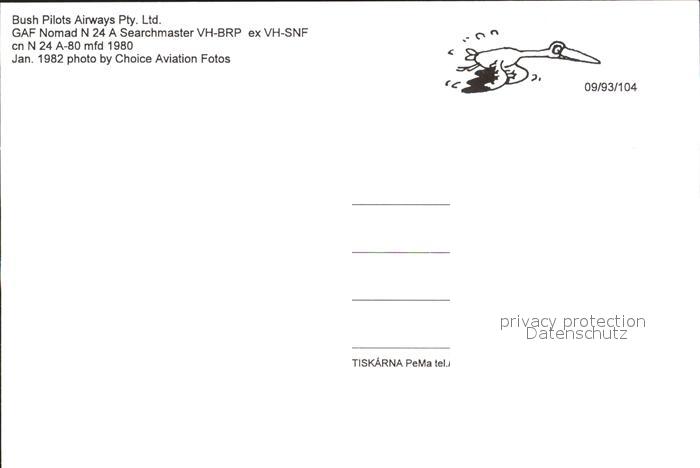 Flugzeuge Zivil Bush Pilots Airways GAF Nomad N 24 A Searchmaster VH-BRP ex VH-SNF cn N24A-80 postalisch nicht gelaufen Erhaltung siehe scans