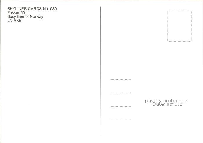 Flugzeuge Zivil Busy Bee of Norway Fokker 50 LN-AKE postalisch nicht gelaufen Erhaltung siehe scans