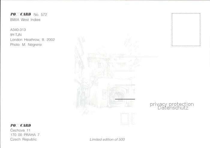 Flugzeuge Zivil BWIA West Indies A340-313 9Y-TJN postalisch nicht gelaufen Erhaltung siehe scans