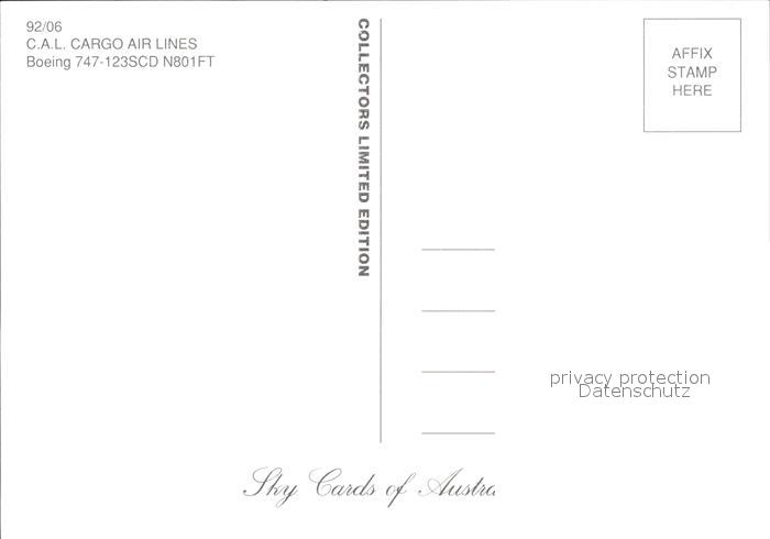 Flugzeuge Zivil C.A.L. Cargo Airlines Boeing 747-123SCD N801FT postalisch nicht gelaufen Erhaltung siehe scans