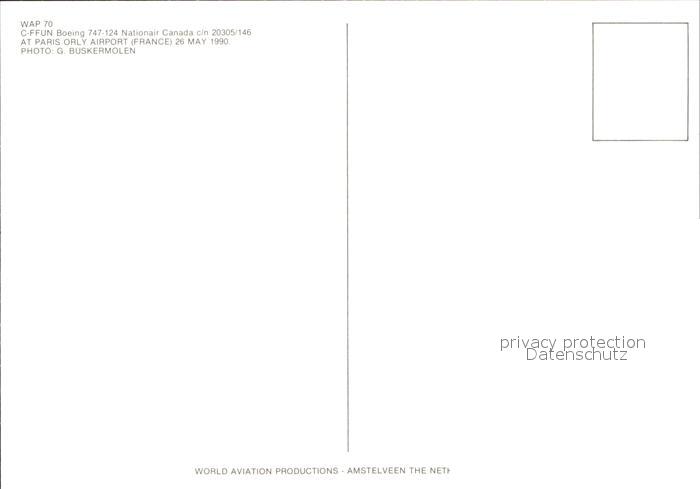 Flugzeuge Zivil C-FFUN Boeing 747-124 Nationair Canada c/n 20305/146 postalisch nicht gelaufen Erhaltung siehe scans