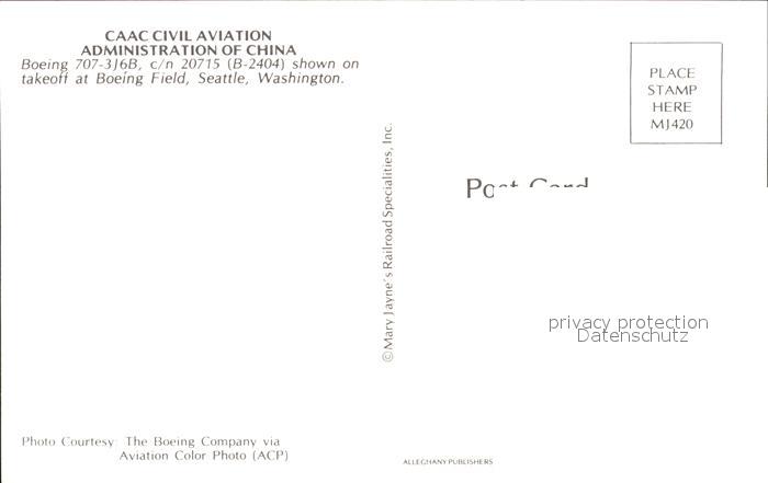 Flugzeuge Zivil CAAC Civil Aviation Adminstration of China Boeing 707-3J6B c/n 20715 B-2404 postalisch nicht gelaufen
