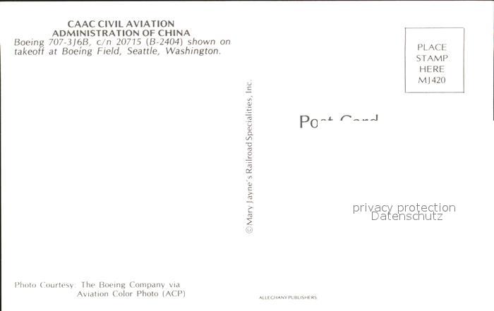 Flugzeuge Zivil CAAC Civil Aviation Boeing 707-3J6B c/n 20715 B-2404 postalisch nicht gelaufen Erhaltung siehe scans