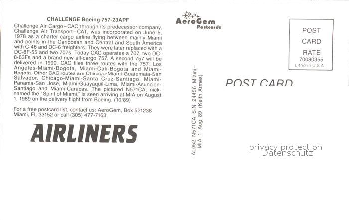 Flugzeuge Zivil CAC Boeing 757-23APF postalisch nicht gelaufen Erhaltung siehe scans