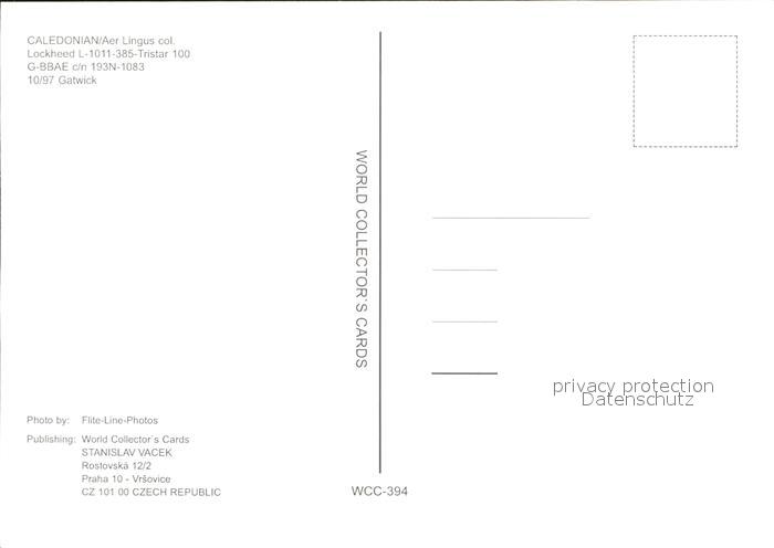 Flugzeuge Zivil Caledonian/Aer Lingus col. Lockheed L-1011-385-TriStar 100 G-BBAE postalisch nicht gelaufen Erhaltung siehe scans
