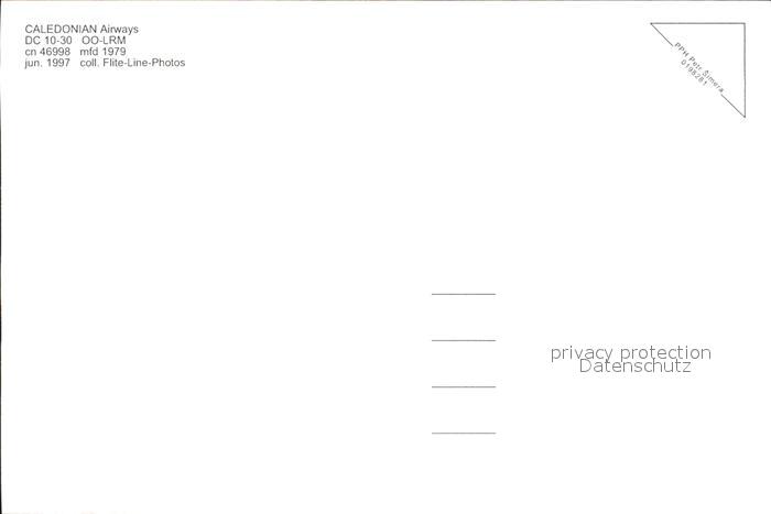 Flugzeuge Zivil Caledonian Airways DC-10-30 OO-LRM cn 46998 postalisch nicht gelaufen Erhaltung siehe scans