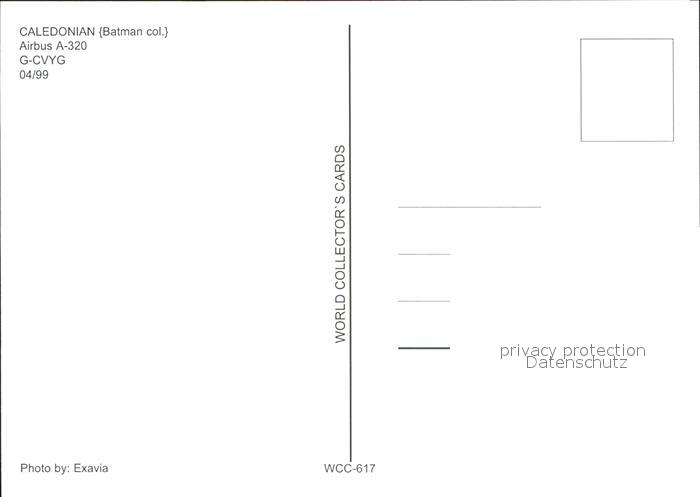 Flugzeuge Zivil Caledonian Batman colours Airbus A-320 G-CVYG postalisch nicht gelaufen Erhaltung siehe scans