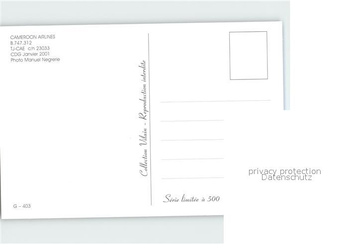 Flugzeuge Zivil Cameroon Airlines B-747-312 TJ-CAE c/n 23033 postalisch nicht gelaufen Erhaltung siehe scans