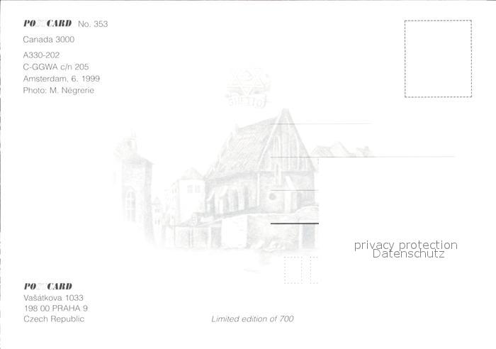 Flugzeuge Zivil Canada 3000 A330-202 C-GGWA c/n 205 postalisch nicht gelaufen Erhaltung siehe scans