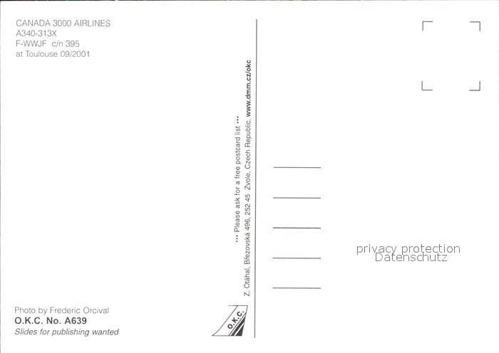 Flugzeuge Zivil Canada 3000 Airlines A340-313X F-WWJF c/n 395 postalisch nicht gelaufen