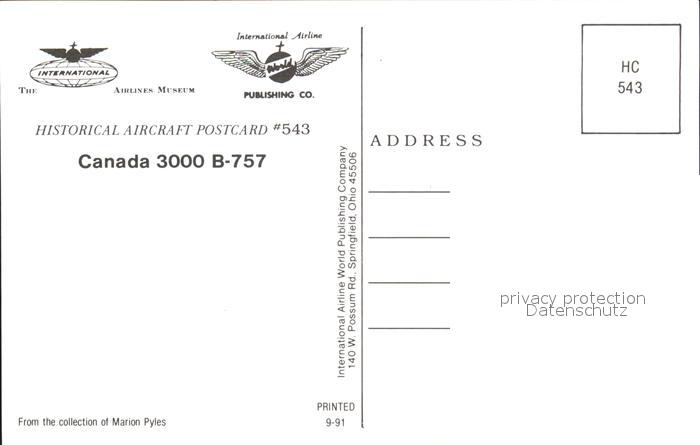 Flugzeuge Zivil Canada 3000 B-757 postalisch nicht gelaufen Erhaltung siehe scans