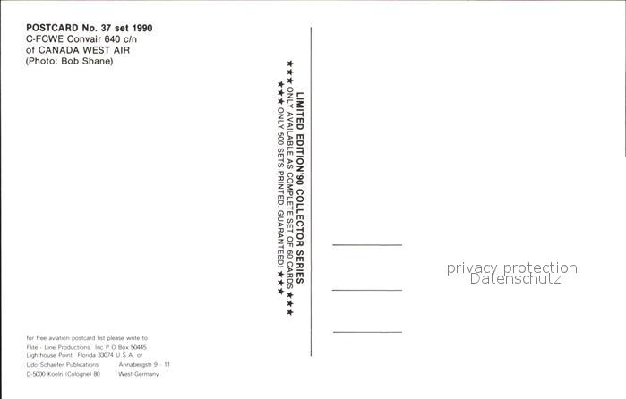 Flugzeuge Zivil Canada Wet Air Convair C-FCWE postalisch nicht gelaufen Erhaltung siehe scans