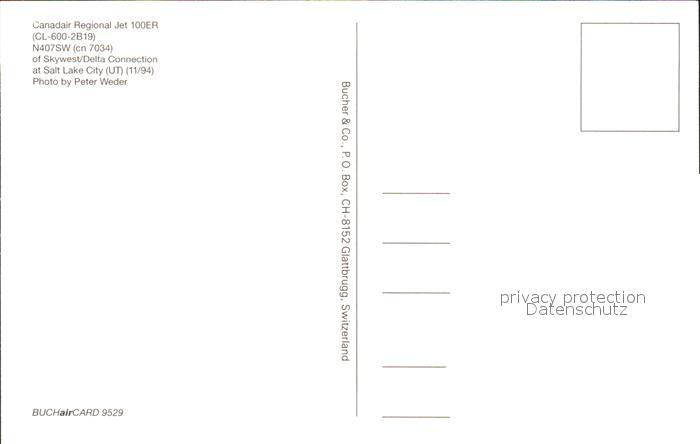 Flugzeuge Zivil Canadair Regional Jet 100ER CL-600-2B19 N407SW cn 7034 Skywest Delta Connection postalisch nicht gelaufen Erhaltung siehe scans