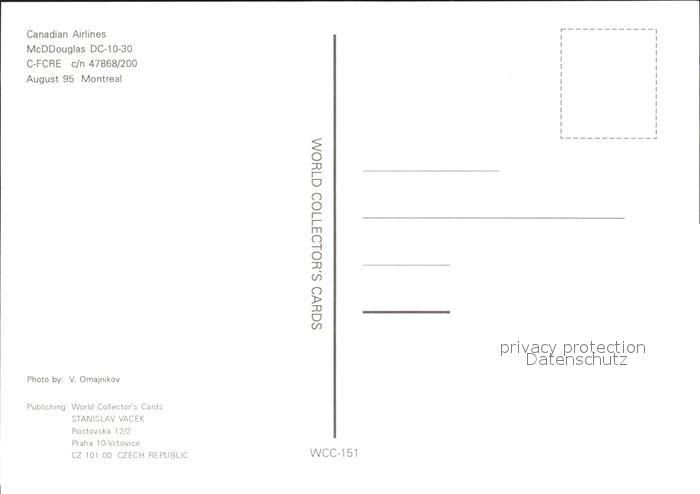 Flugzeuge Zivil Canadian Airlines McDDouglas DC-10-30 C-FCRE c/n 47868/200 postalisch nicht gelaufen Erhaltung siehe scans