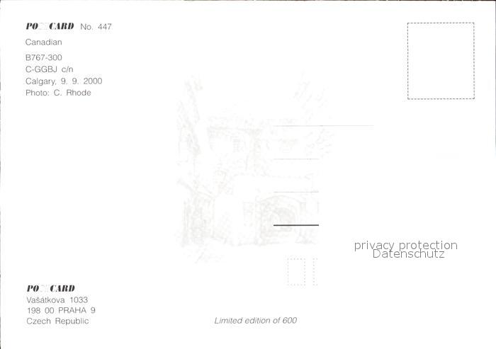 Flugzeuge Zivil Canadian B767-300 C-GGBJ postalisch nicht gelaufen Erhaltung siehe scans
