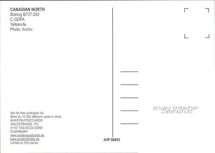 Flugzeuge Zivil Canadian North Boeing 737-200 C-GDPA postalisch nicht gelaufen Erhaltung siehe scans