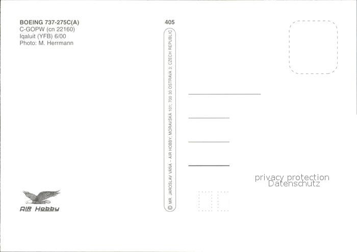 Flugzeuge zivil Canadian North Boeing 737-275C (A) C-GOPW (cn 22160) Iqaluit YFB postalisch nicht gelaufen Erhaltung siehe scans